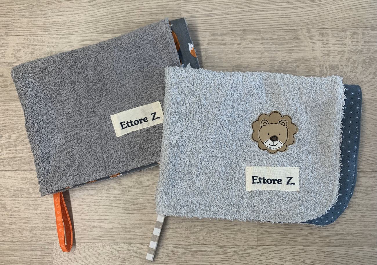💡 Vuoi tutto coordinato? Questo asciugamano è abbinabile a sacchetto e bavaglino con elastico, per un set perfetto anche come idea regalo. Contattami!