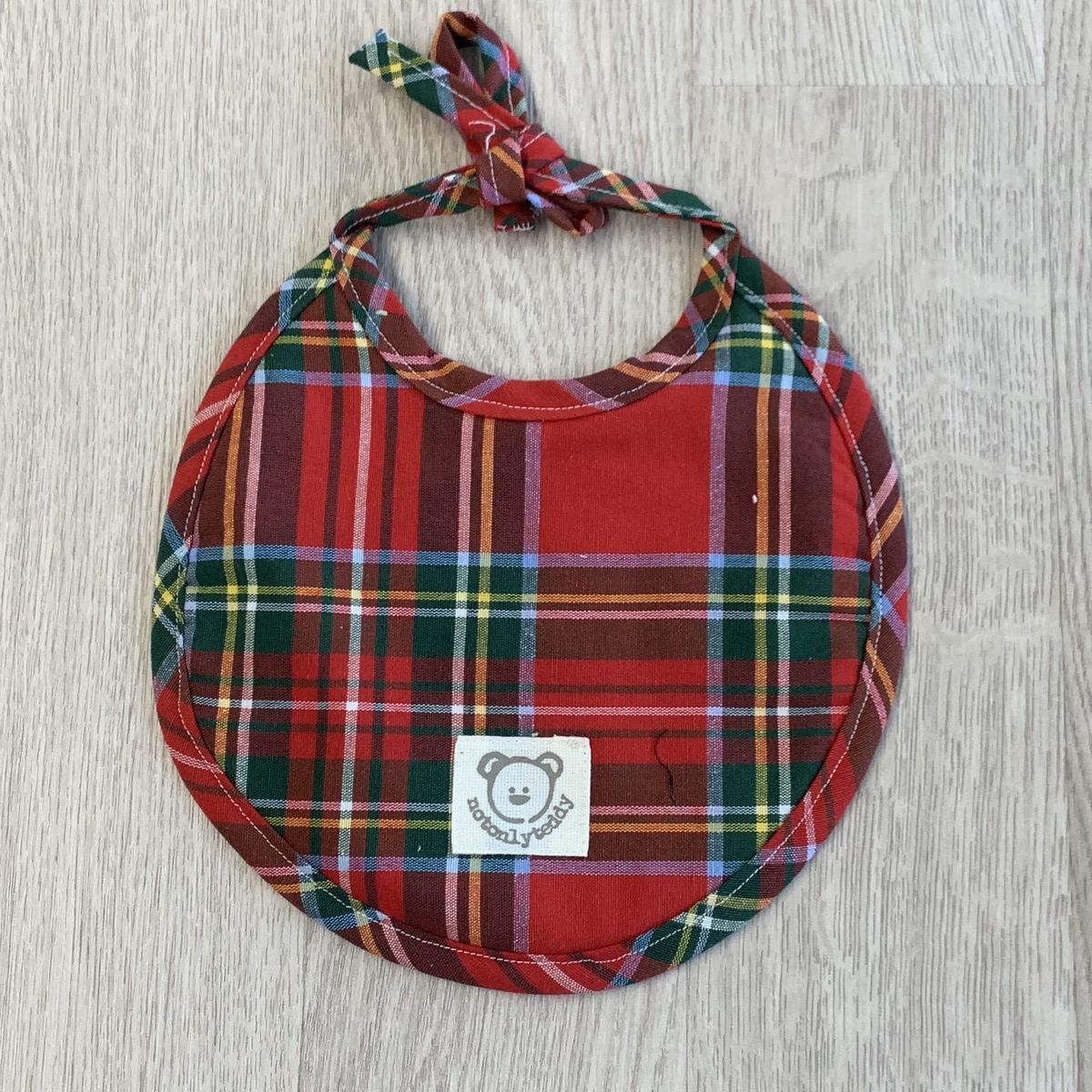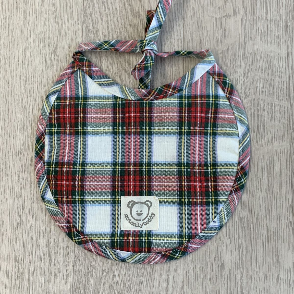 Bavaglino per neonato/a. Idea regalo per nuova nascita. Un "pensierino" dolcissimo! Davanti tessuto in cotone o bambù bianco avorio. Retro e bordino in tessuto misto cotone/poliestere tartan. Disponibile in due varianti: