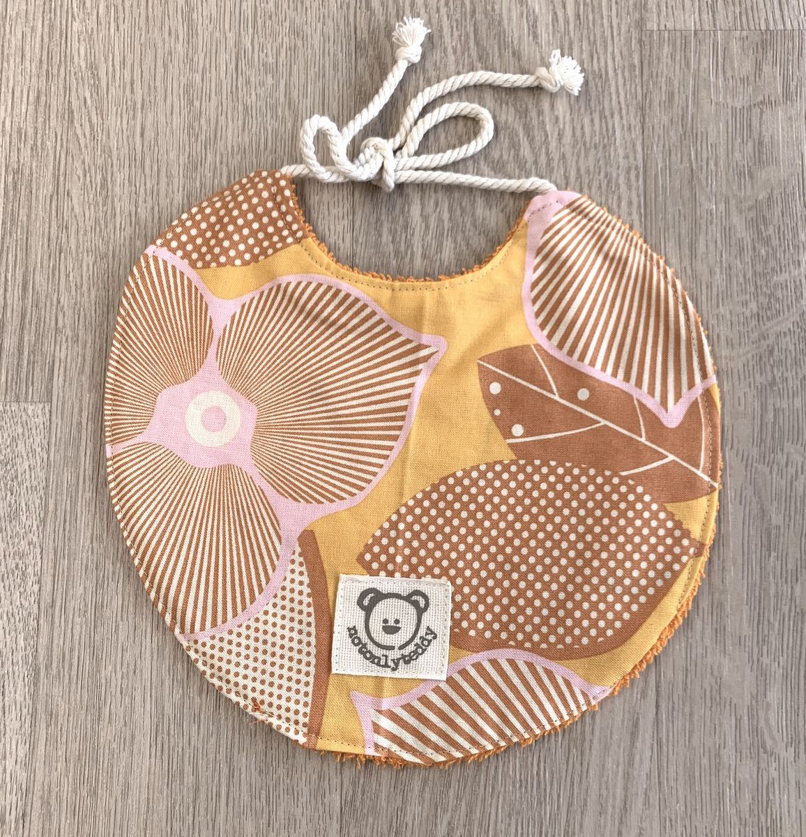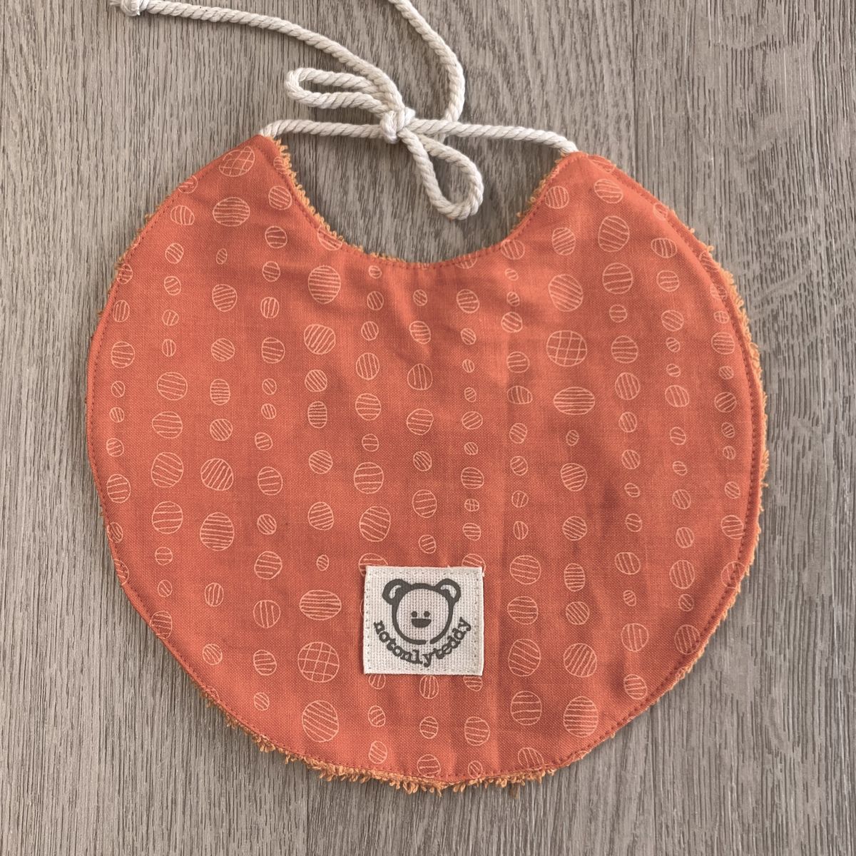 Ho alcuni pezzi di questo bavaglino, quindi potresti non ricevere quello della foto ma uno uguale che potrebbe differire in qualche dettaglio per il fatto stesso di essere fatto a mano.