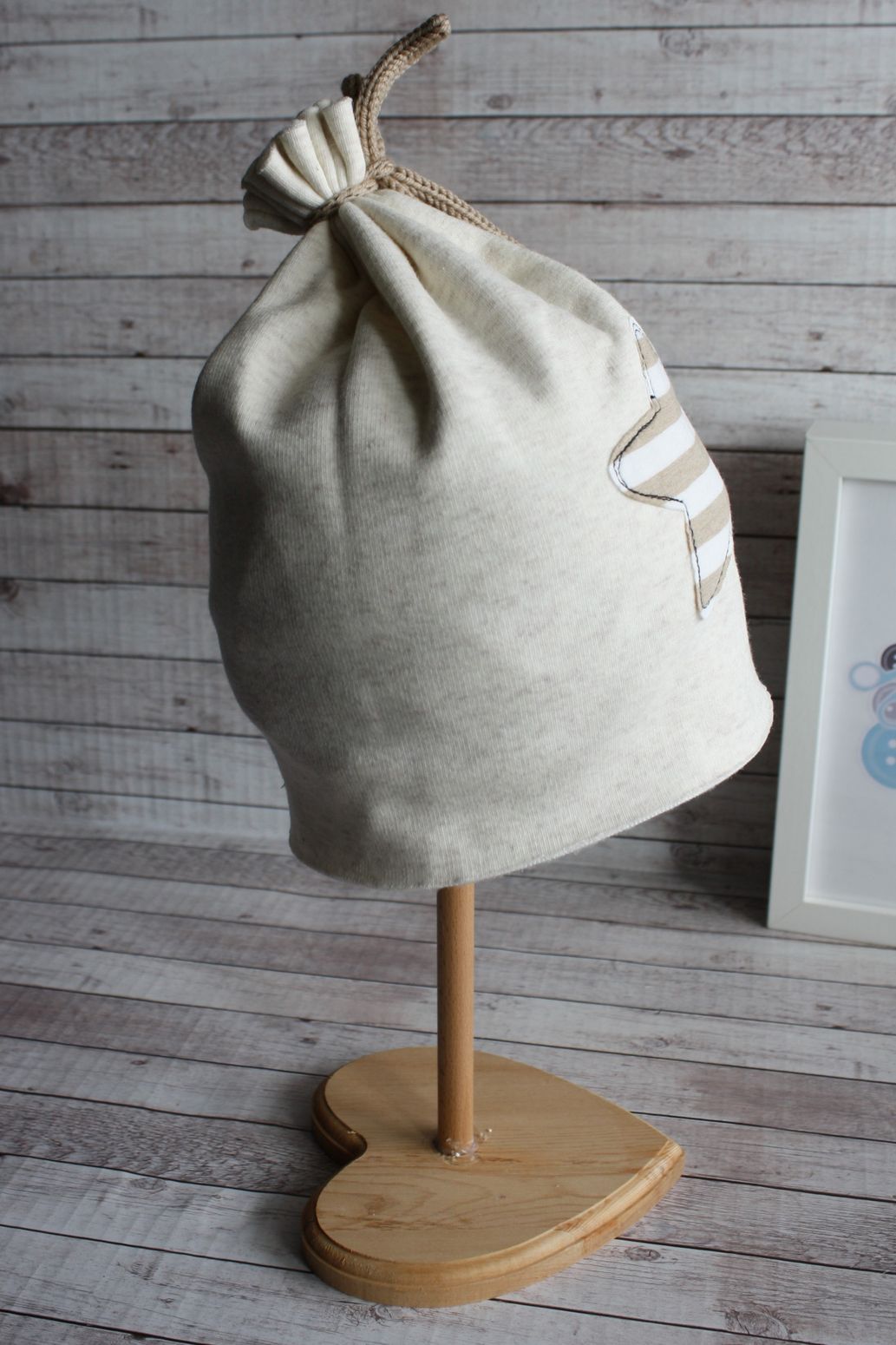 Berrettino in calda felpa beige chiarissimo, con bordi tagliati "a vivo".