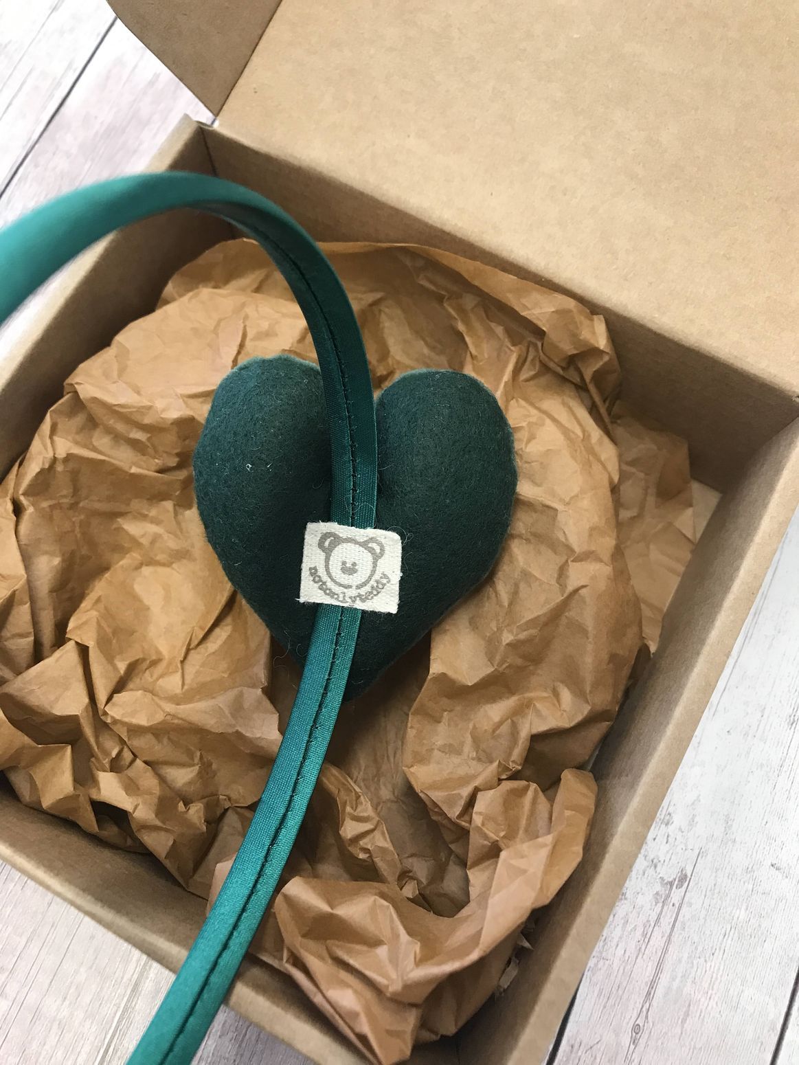 Il cuore è fatto a mano: velluto e panno in tinta, cuciti e imbottiti con poliestere.