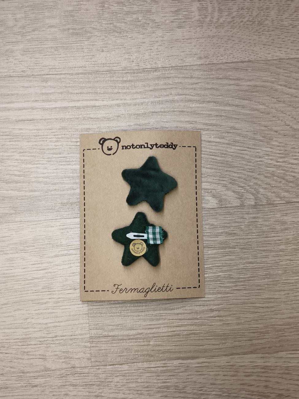 Questi fermaglietti a forma di stellina, sono leggermente imbottiti e morbidissimi, non danno fastidio perchè la clip è "nascosta" nella stoffa. Sono molto facili da aprire con il sistema clic-clac che va bene anche per le manine piccole.