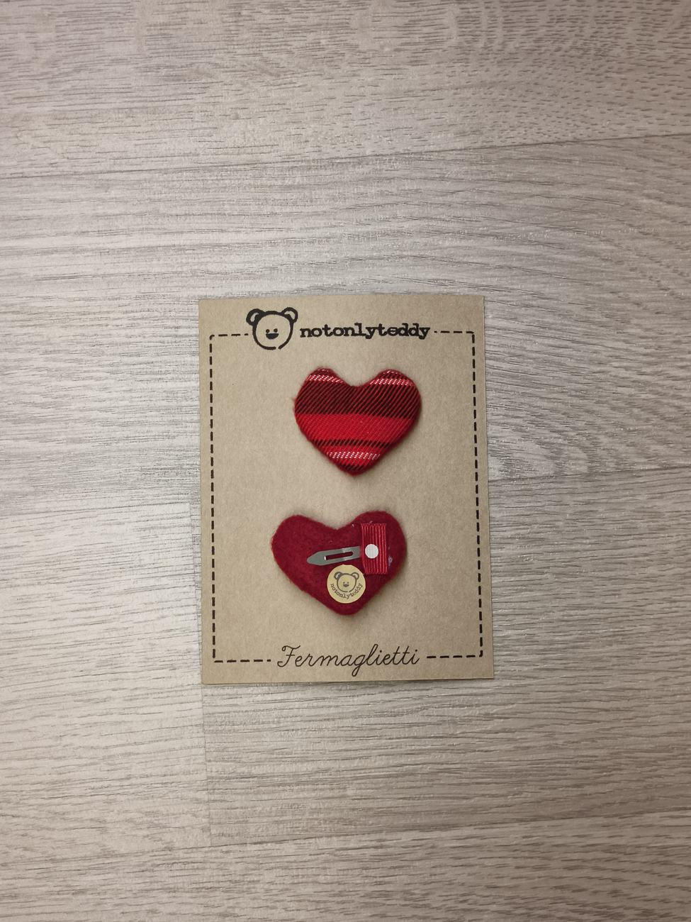 Fermaglietti per bimba a forma di cuore - versione piccolissima - Tartan rosso