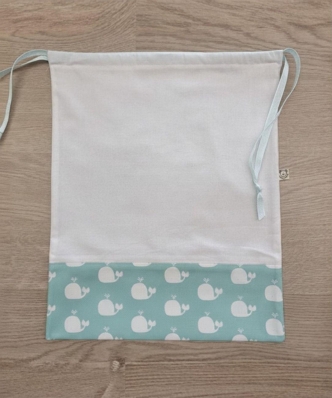 Sacchetto semplice bianco e azzurro mare - balene COMPONIBILE