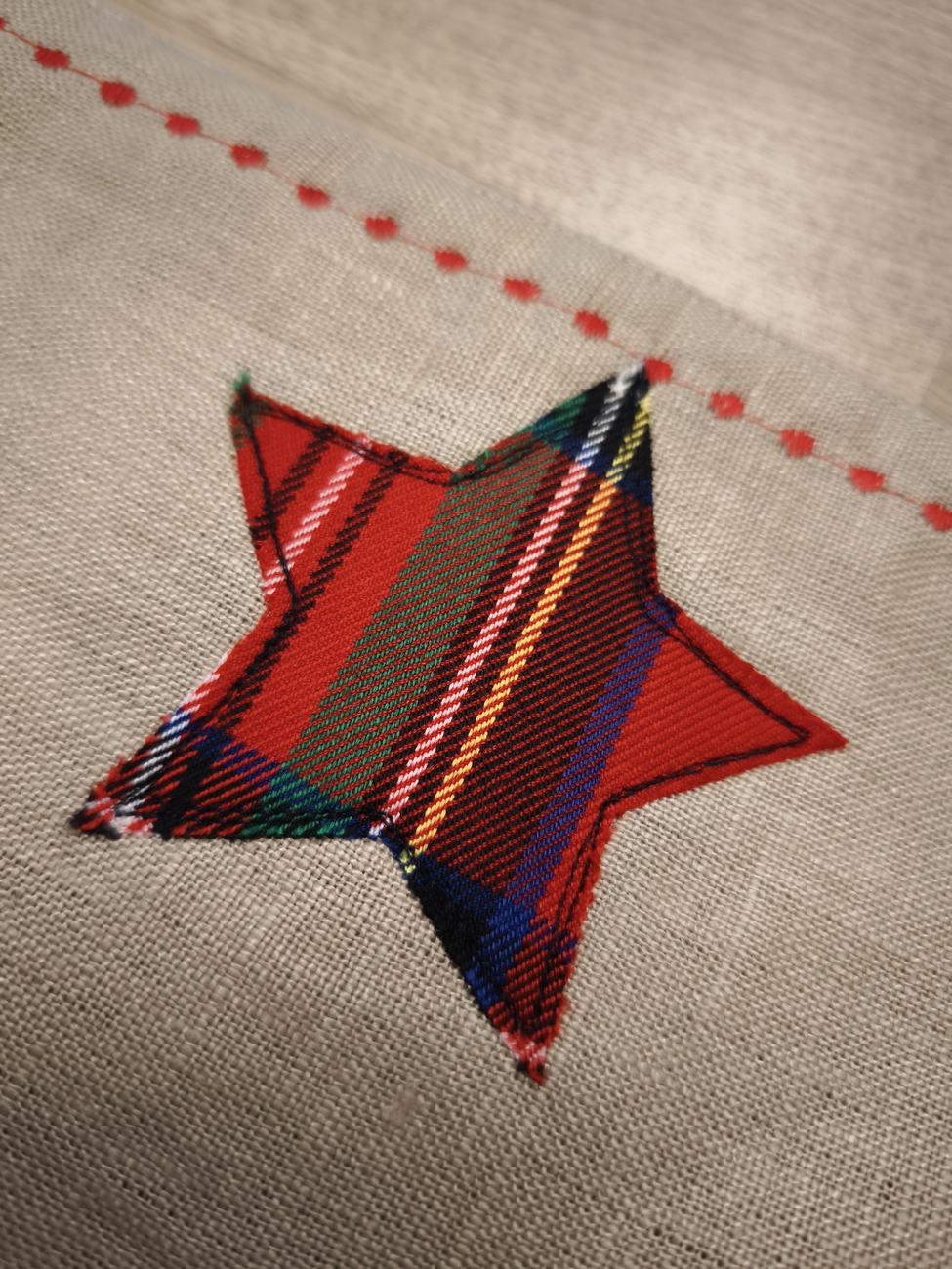 Ricamo a macchina (non ricamatrice) lungo il bordo.