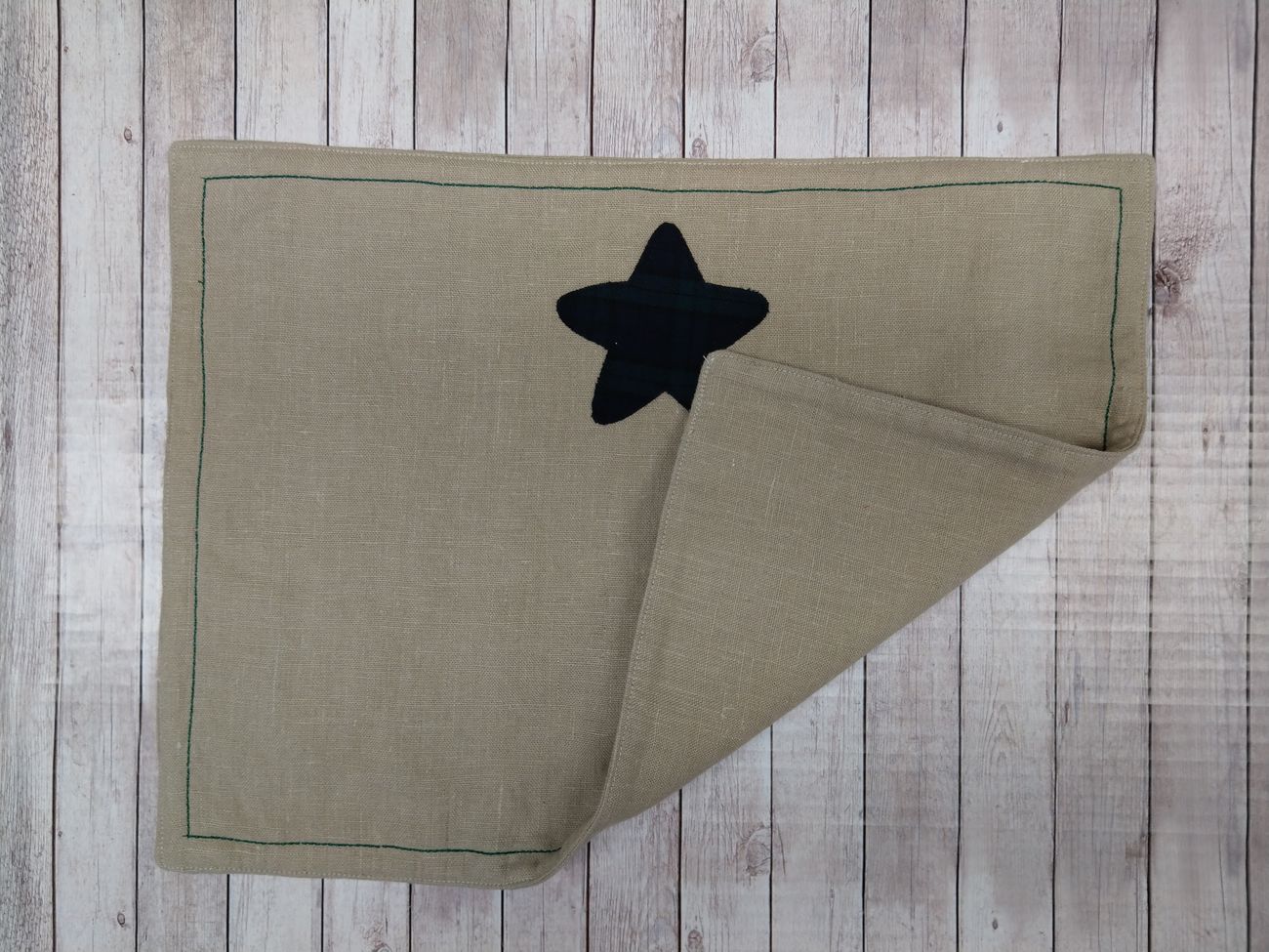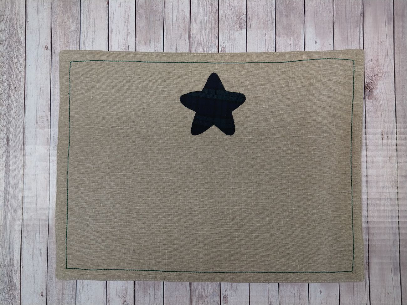 Davanti lino grezzo con applicazioni in tessuto di cotone (vedi foto per il soggetto).